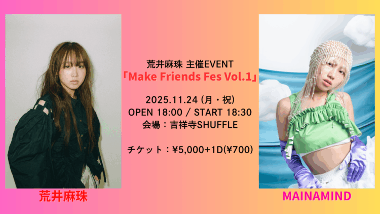 荒井麻珠 主催EVENT「Make Friends Fes Vol.1」開催決定!