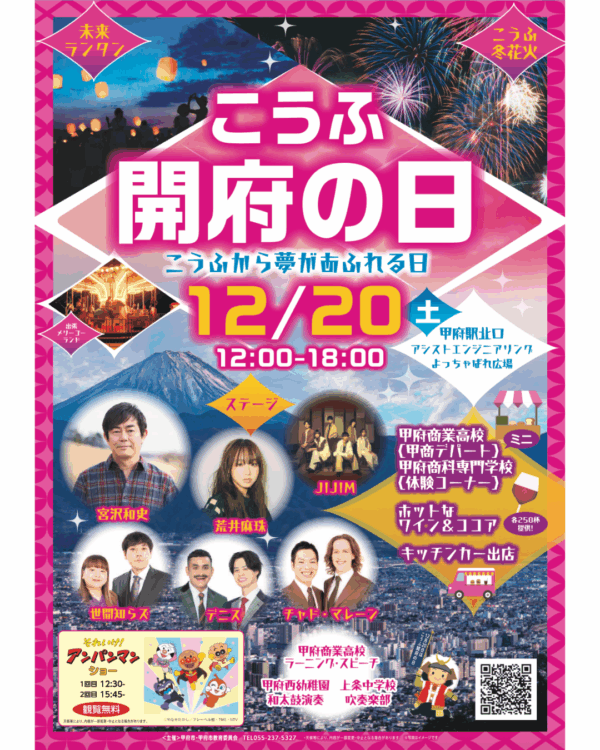 12/20(土)「こうふ開府の日」に荒井麻珠の出演が決定いたしました!